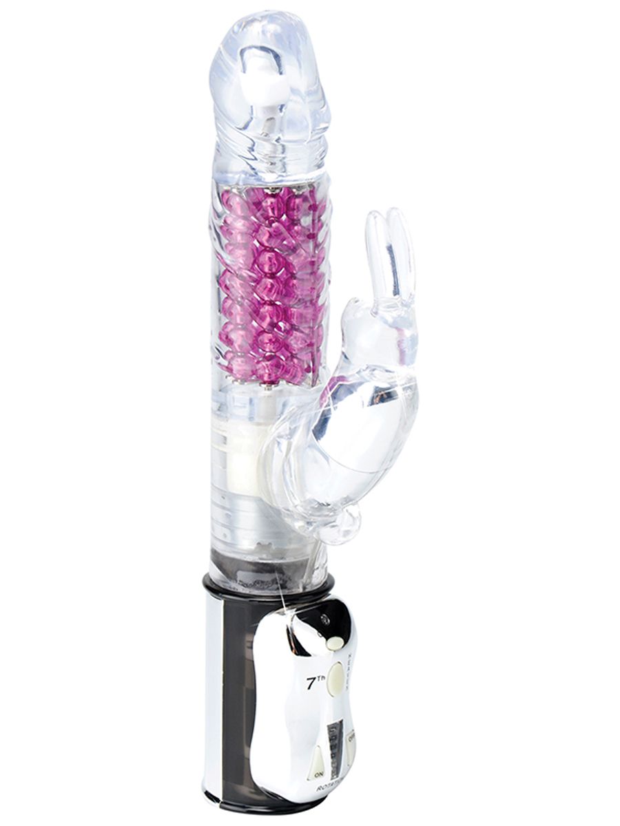 Reach heavenly heights of ecstasy with this thrilling dual-action vibe and clitoral stimulator. Choose from six shaft rotation speeds and seven patterns of clitoral stimulation, or enjoy both functions at the same time. Feel the rabbit’s amazing ears tickle and excite your clit while the spinning pleasure pearls massage deep inside. Go from a flutter to a throb with the touch of a button and surrender to the orgasmic vibrations! You’re in control…so what are you waiting for?