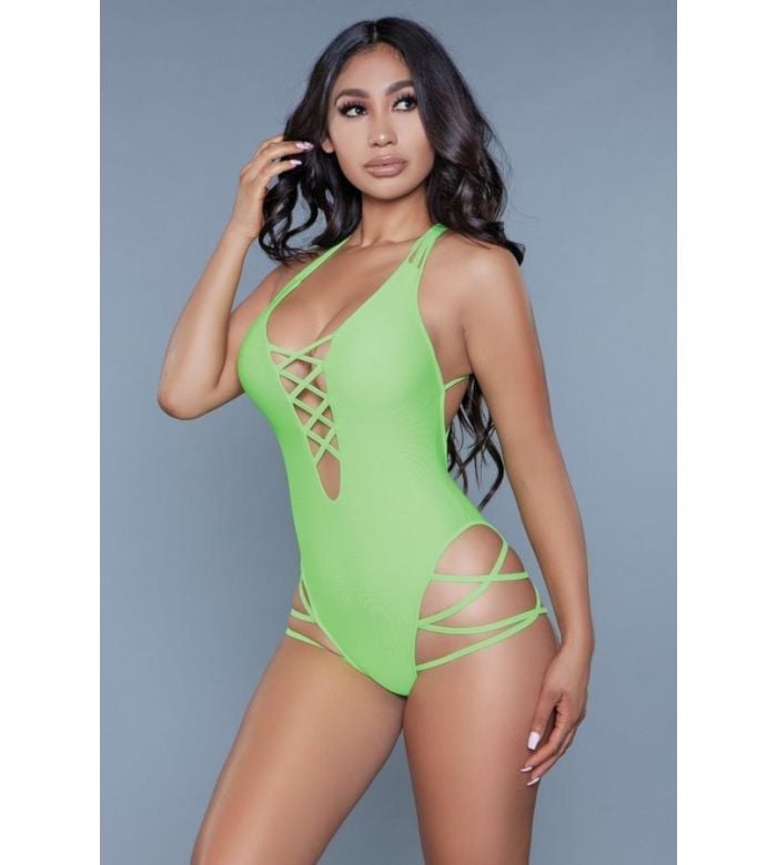 - Description: Sexy has never looked better than this at the pool or beach. 1 Piece. Swimsuit with Criss cross front, side and back detail.