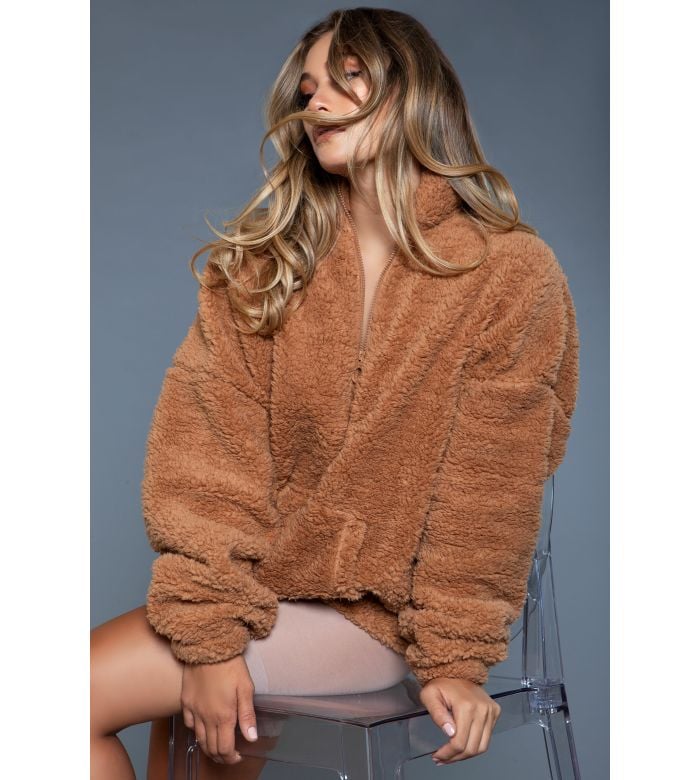 • Description: Beautiful, soft, and sensual. 1 pc lounge oversized borg jacket (teddy coat) with front zipper fastening.