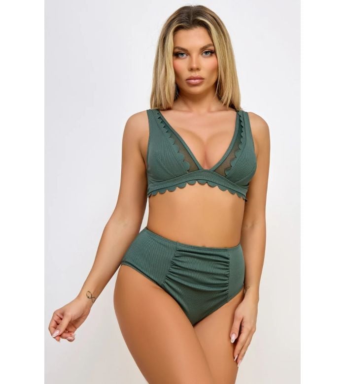 • Elevate your beach style with our Olivia Bikini set, featuring a chic and timeless scalloped design. This bikini set features a top with a mesh neckline and a high-waist ruched bottom.
