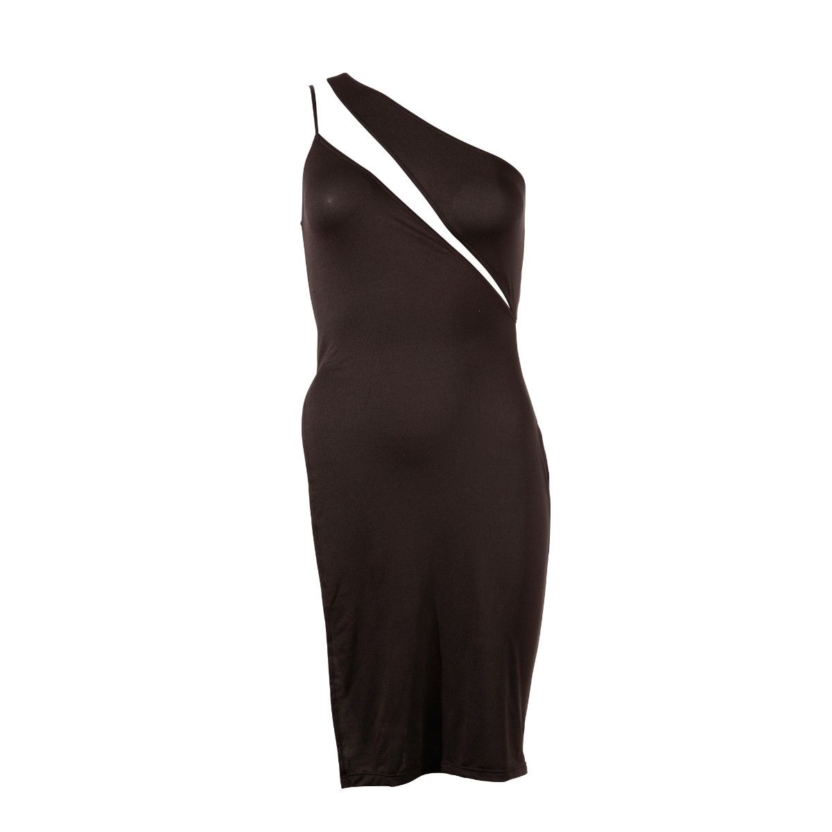Are you going to a party? Or are you looking for a sexy dress to wear in the bedroom? That is no problem with this black one shoulder dress. It has a sophisticated cleavage and extremely high slit up the right-hand side. One of the straps on the right shoulder is adjustable.