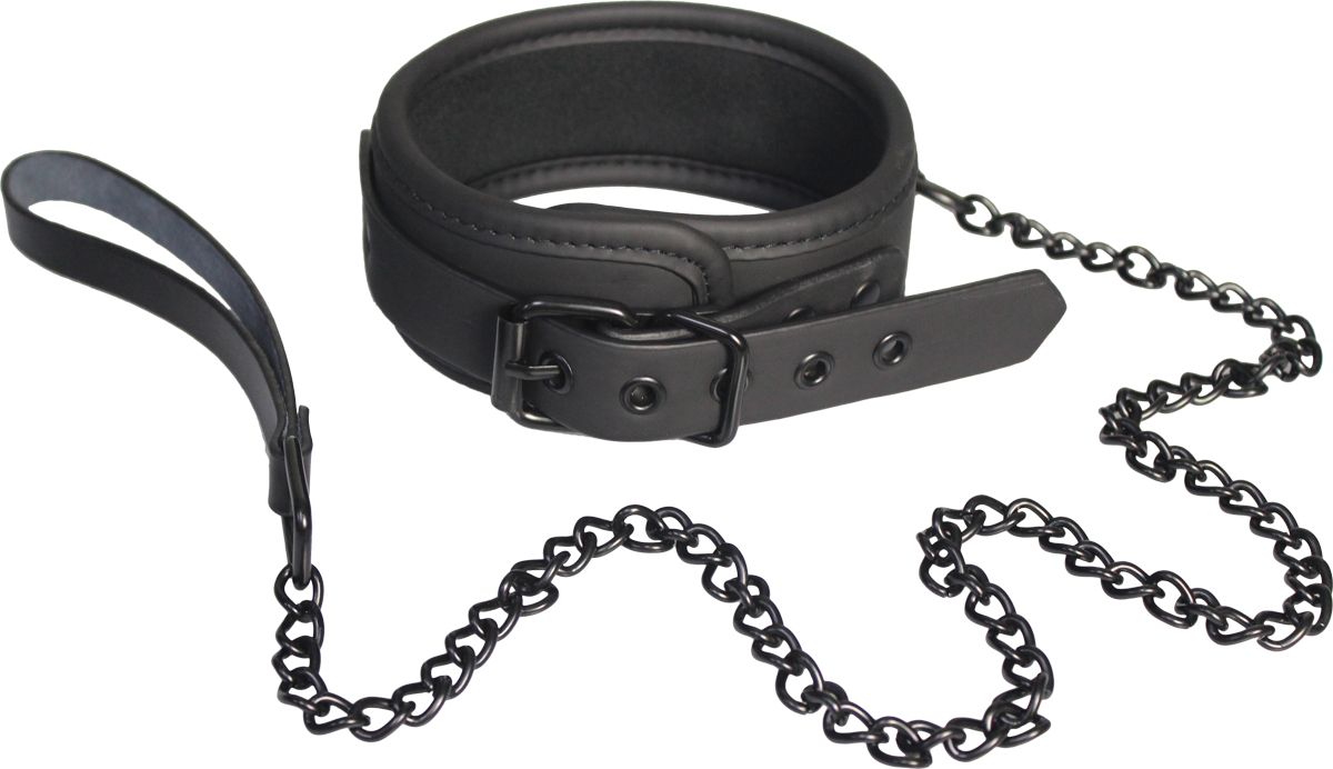 Durable neoprene collar. Fully adjustable with the simple, belt style buckle and connected to a removable black chain.