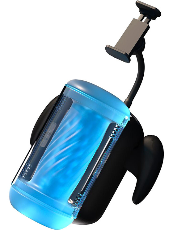 The blue sleeve on the inside of the transparent shell is made of soft and flexible TPE-material with textures for a fantastic penis-massage along with the thrusting-function.