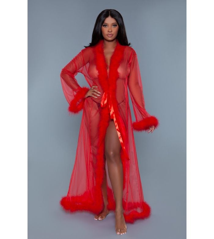 - Description: One of our top sellers! One of the most elegant looks in lingerie. Be a movie start in this sheer full-length robe with marabou feather trim. Dazzle the world and eveyone around you!