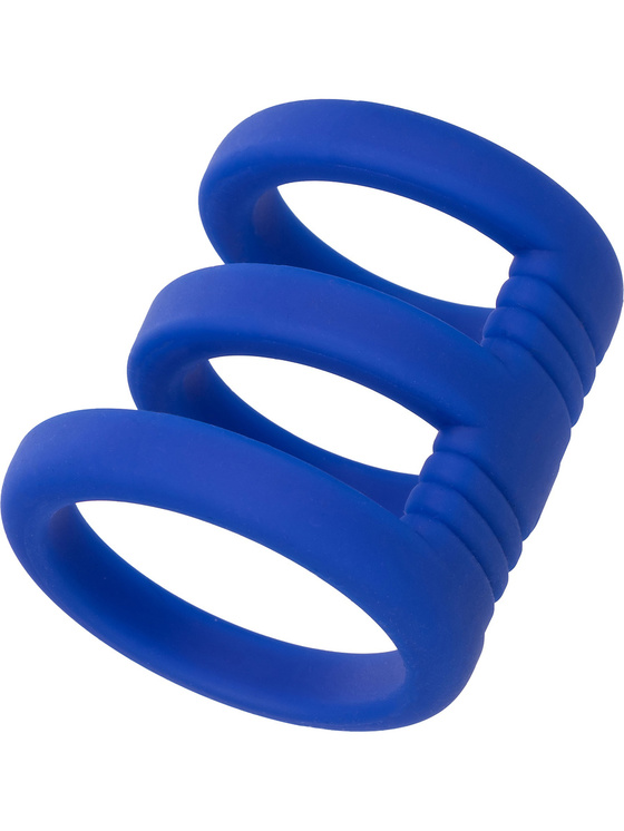 This is an effective cockring with triple rings that enhances the erection and provides optimal support. The stretchy, flexible and robust ring is designed to increase endurance, improve sensitivity and provide superior erection support. Place one ring around both penis and scrotum and the other two around just the penis to look forward to explosive pleasure as the comfortable rings embrace.