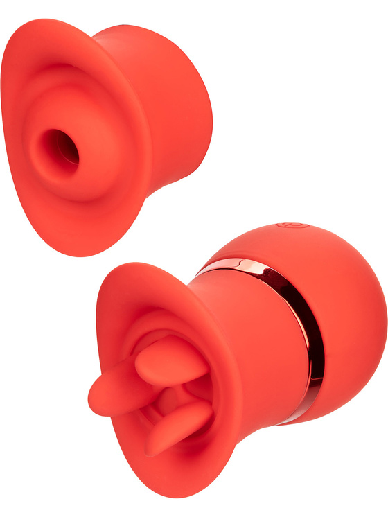 The sensual sex toy French Kiss offers you double the pleasure with its two interchangeable accessories; one with three, vibrating tongues and one with an opening with suction-effects. Vary your experience and choose between 12 vibration-modes and 12 suction-modes. With a built-in memory card, it remembers the last setting used.
