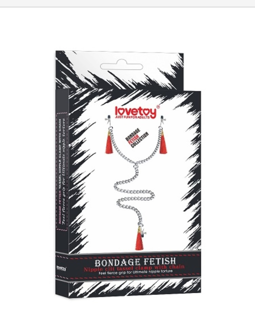 Nipple and clitoris clamps with metal chain.