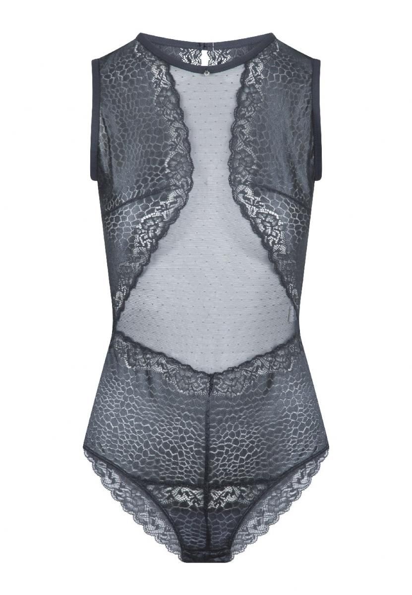 This classy body in silver gray has a seductive silhouette and a beautiful design with lace details. The back is cut low and the buttocks remain largely free. The body has a closure in the neck and the material is elastic for a nice fit.