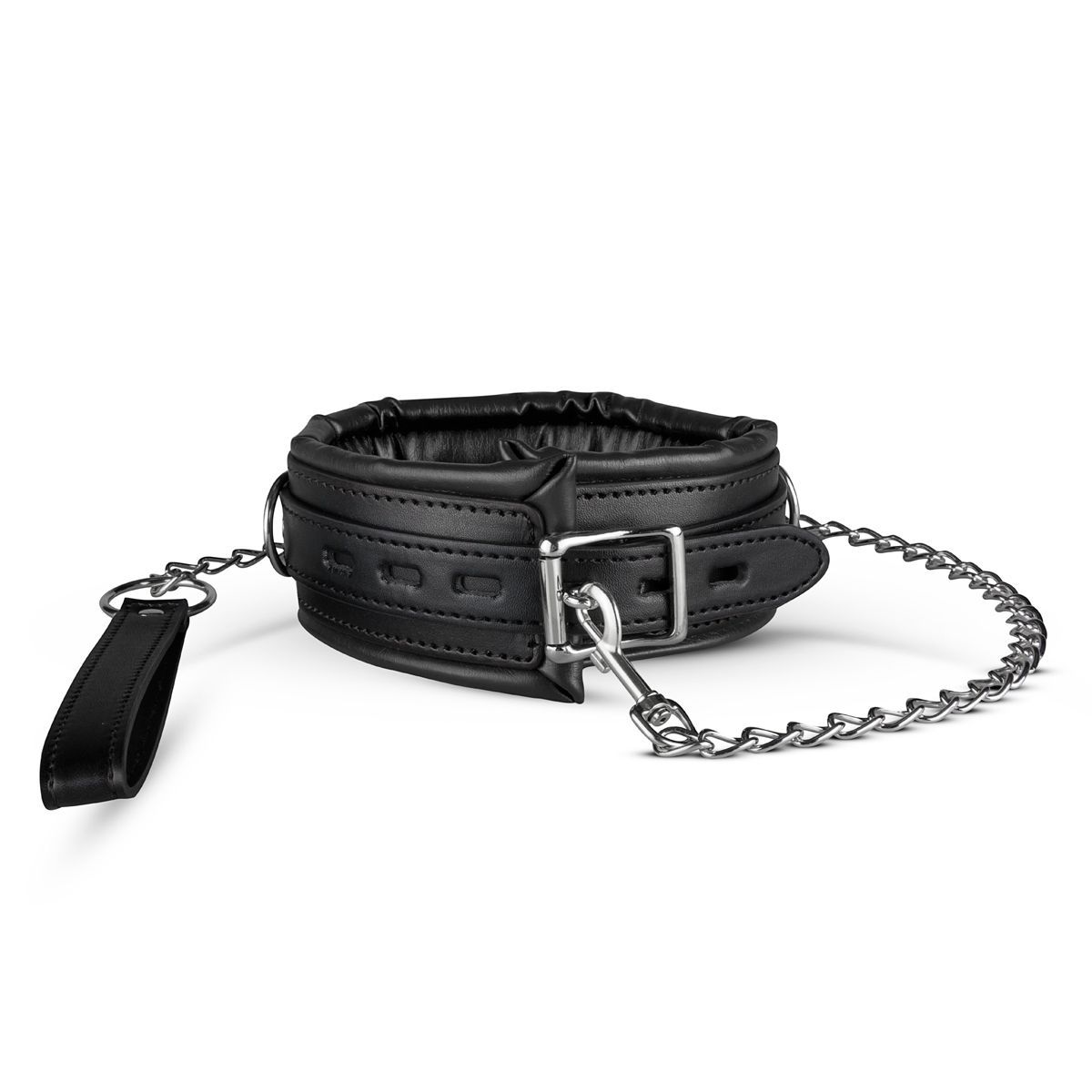Complement your bondage collection with this stylish collar from the Whipped collection. The collar has three metal D-rings, so you can combine it with a bondage harness, chains, ropes, cuffs etc. The collar is adjustable for a good fit. The set includes a metal leash with loop. This collar is perfect for bondage or S&M, as well as exciting roleplay sessions with your partner.
