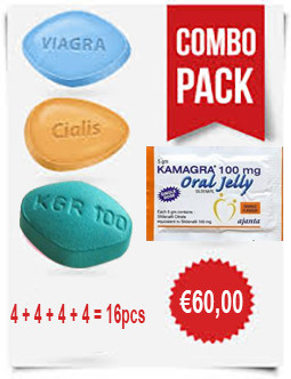 Combo 4 Viagra + 4 Cialis + 4 Kamagra Tabs + 4 kamagra Oral Jelly 16 pcs