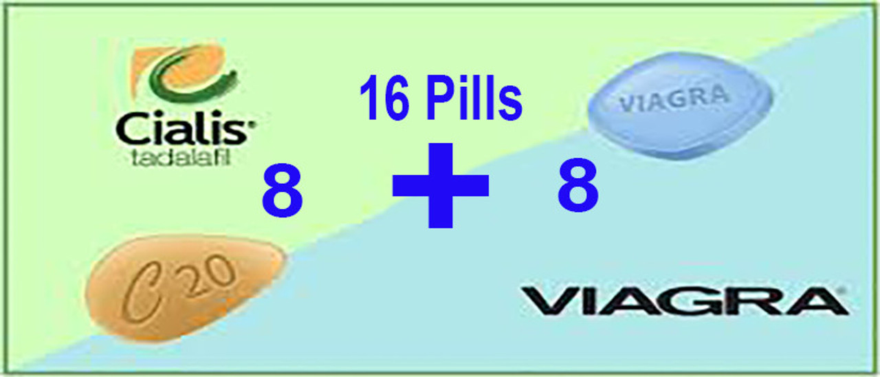 Combo Viagra Sildenafil Tablets 100mg + Cialis Tadalafil 20mg (8pills + 8pills) 16 Pcs