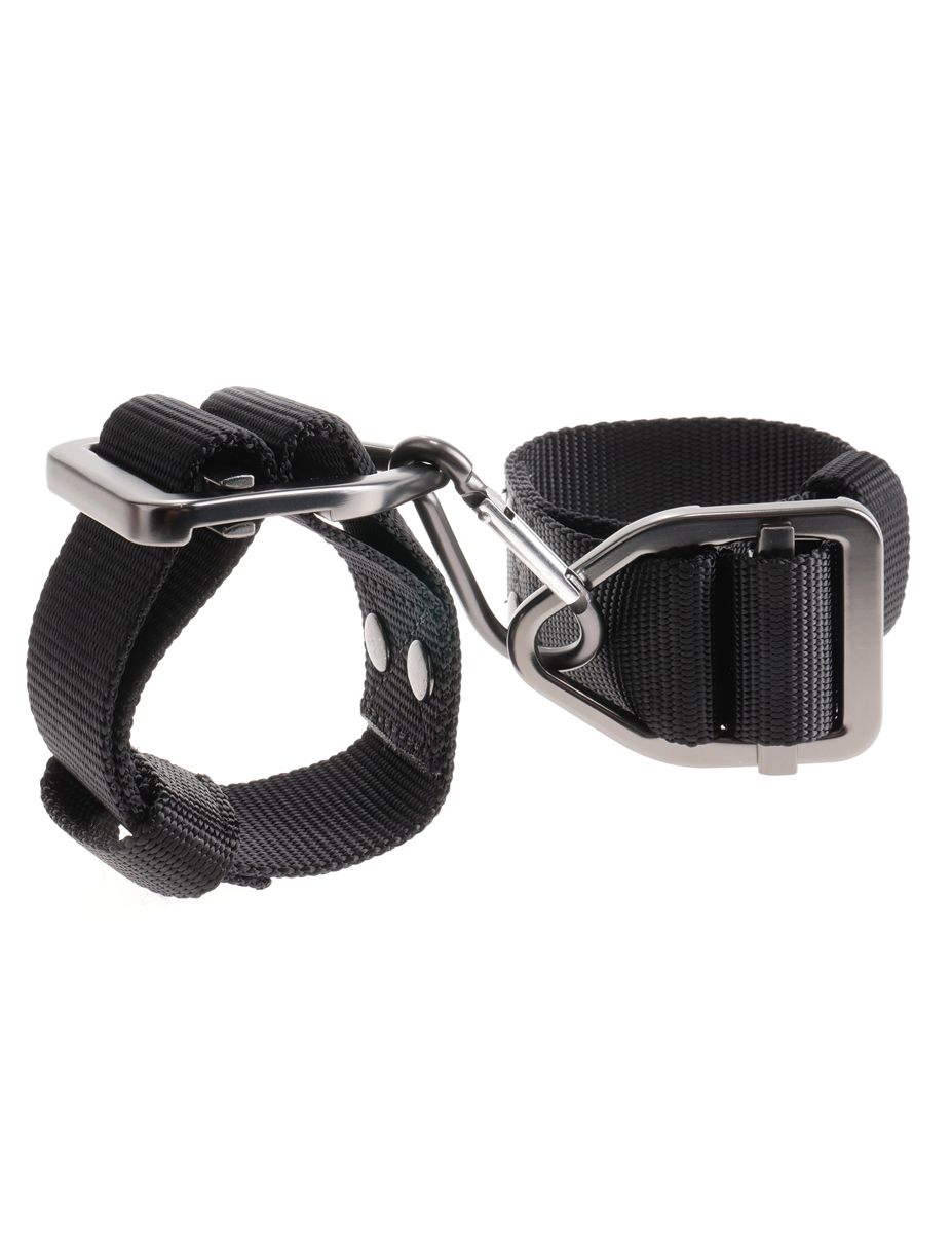 Sir Richardâs Heavy-Duty Cuffs force surrender. Heavy-Duty Cuffs firmly secure both wrists, or both ankles depending on your bondage-play preference. Two Heavy-Duty Cuffs wrap each wrist with thick, durable industrial-strength nylon straps that feature fully adjustable stainless steel lock rings, allowing for a controlled, custom fit every time. The professional-grade carabiners can support hardcore play and ensure complete control. The strategic V-Ring design offers further control and lessens slippage associated with average O-Rings. Use the carabiners to link the Heavy-Duty Cuffs to other COMMAND products for optimum versatility.