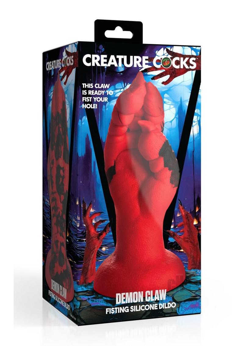 Want to get fisted by a demon, dragon, or other mythical creature? This Creature Cocks Demon Claw is the perfect addition to your kinky collection! This red hand has scales on it, long claws, and meaty fingers! Enjoy the unique textures as you take this clawed hand inside! The wide flanged base makes it safe for backdoor play as well as front door entry. The base also has a strong suction-cup for hands-free riding! Combine it with a compatible strapon harness for couple`s roleplay or pegging. Made out of squishy, firm, flexible material it can get into every space, no matter how tight! Enjoy the premium quality silicone that is body-safe and phthalate-free. Play with kinky cosplay, fantasy roleplay, and any sci-fi or horror scene you`re dreaming up! After play, wash with warm water and mild soap, then rinse and spray with a toy cleaner before patting dry. Store in a cool, dark place out of direct sunlight. Use only with water-based lubricants for best results. The demon, eyes blazing, with horns on its head and a ripped body, stares at you, smirking. Go away! you say, in a hushed tone, panicking. Someone will see you! They laugh and throw up their hands. As they do, a wall of fire appears and everything freezes in the hallway. Oh, no, no, no. We have a deal to complete. You wanted something from me, and I want something from you, and in order to get what I want, I need to fulfill your desire. You stomp your foot, frustrated. This is my school! It is the middle of the day! I was drunk when I made that pact! Can`t I get out of it? You look around, bite your lip, and try not to make eye contact. The demon walks forward. A smell of sulfur, fire, and blood fills your nostrils and you nearly gag. That is not how it works. You wanted to be seen as a sex object, as someone people would see and remember. You didn`t want to be invisible anymore. I am going to make that happen. Then with a flash of smoke, the demon disappears and the fire walls come down. You blink, shocked at how quickly things went back to normal. You look at your watch and curse. Damn it! I`m going to be late for class! You run to your English class, and take a seat at the back. Today`s topic, ironically, is Dante`s Inferno. The teacher goes on and on about it. You have barely read the book, and can`t seem to stay awake. Suddenly, you feel a hand on your thigh. You stifle a shriek and look around. What was that?, you think. Then you ignore the feeling and decide to focus on class. Then you feel it again, but now you see a handandhellip; a demon hand is reaching out from thin air and grabbing onto your thigh! You try to push it away, but it`s too strong! You can`t make a fuss, or call attention to yourself. You pull your backpack over your lap, hiding it. It slips under your clothing and you bite your lip, terror filling your body. Your eyes bulge as you feel the hand start to slide inside you. Fuck! you whisper, calling attention to yourself. A student looks at you strangely, then shakes their head and looks away again. The hand goes deeper, and you start to grip onto the table. Why does it feel so good? It gets deeper in, and then starts moving. You can`t help yourself and you feel yourself writhing on the hand. You`re desperately trying to hide it, but you feel intense pleasure like never before, and you find yourself gasping softly, moaning. You don`t notice that some other students have started to whisper. Suddenly the pleasure is too intense and you scream out loud, moaning in ecstasy, Fuck yes! as you climax! The whole class is looking at you. The teacher has stopped teaching. On the edge of pure euphoric bliss, you realize the demon gave you exactly what you asked for, and just as they disappear, you faint in embarrassment. Measurements: Overall length: 8.6 inches.Insertable length: 7.4 inches.Narrowest able diameter: 1.8 inches.Widest able diameter: 3.3 inches. Materials: Silicone Color: Red, Black Key Features: Fantasy Dildo: This red and black, clawed, scaled hand is ready to penetrate and open you up! Suction Cup Base: Enjoy the wide, suction cup base of this dildo. Simply press firmly on any flat surface and enjoy riding it hands-free! Harness Compatible: The wide, flanged base is compatible with most strapon harnesses. Premium Silicone: Made of body-safe, phthalate-free, premium silicone.