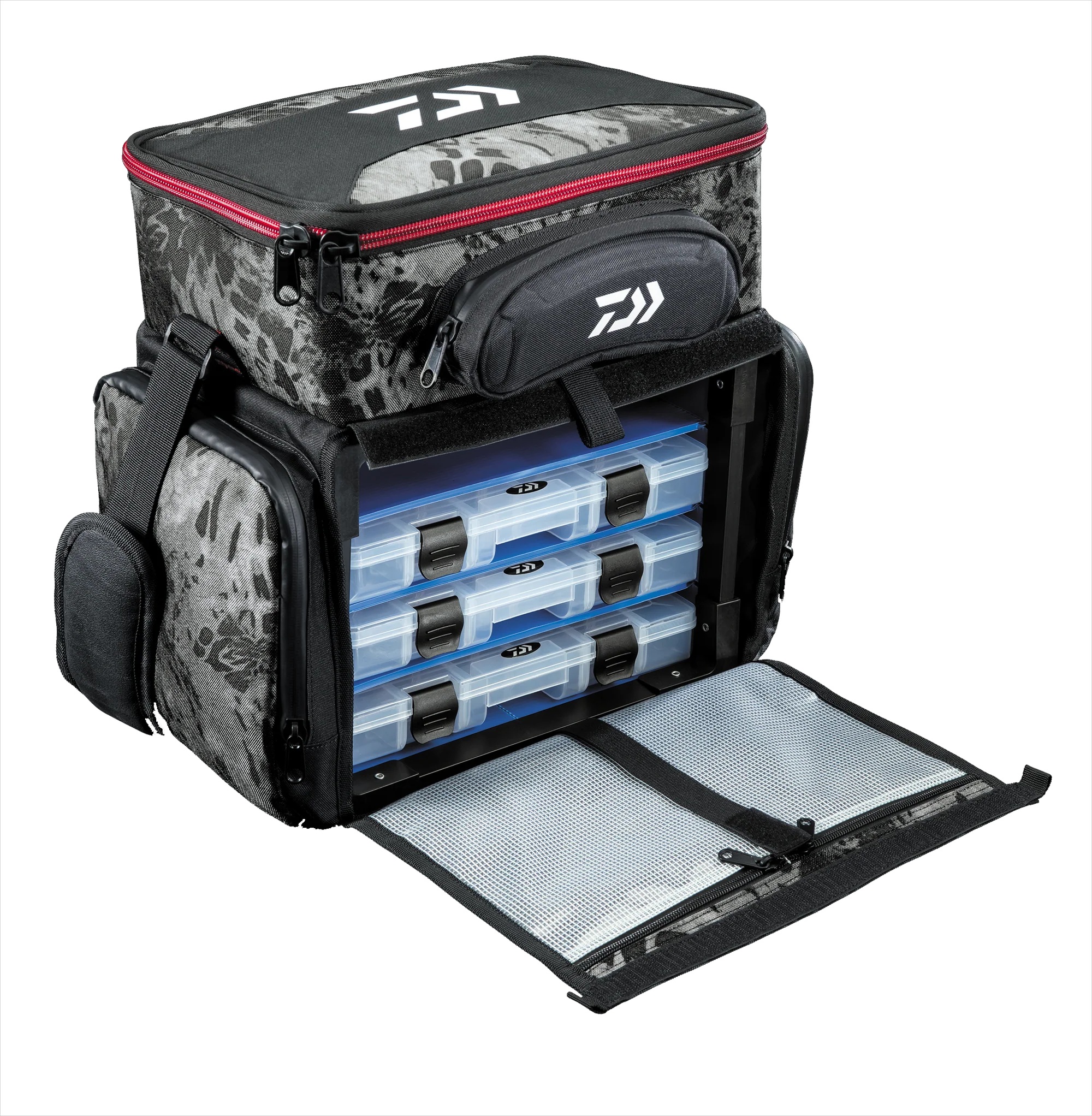 These tackle boxes have tons of storage. The large top pocket will hold 3 storage trays. Molded sunglass holder, 2 zippered side pockets on the sides. Large carry handles, padded shoulder strap and great tackle organization to go anywhere.