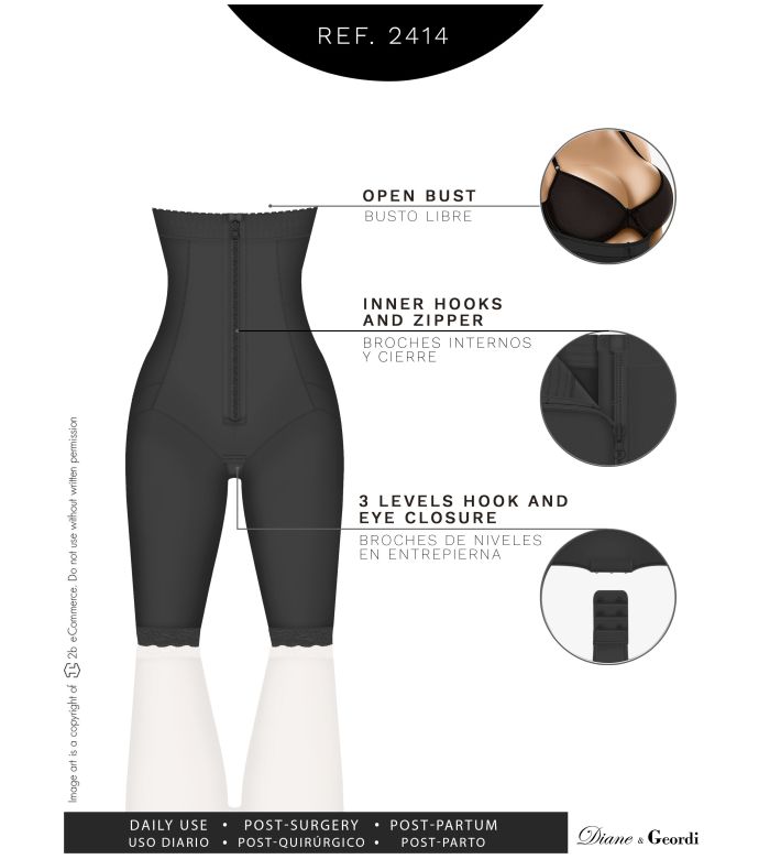 • Item: Diane & Geordi 2414 | Postpartum Butt Lifter Tummy Control Capri Shapewear | Open Bust Knee Length Body Shaper for Women / Powernet