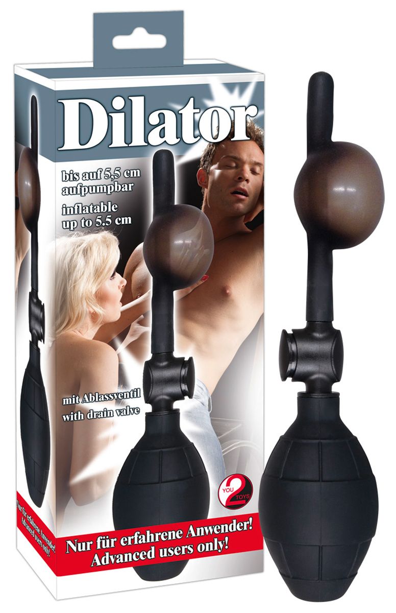For experienced users: inflatable dilator with rounded tip, pump ball and outlet-valve. Total length 22 cm, insertable depth 10.5 cm. ΓΈ 1 – 5.5 cm. Black. Material: silicone, ABS, phthalate-free according to EU Regulation REACH.