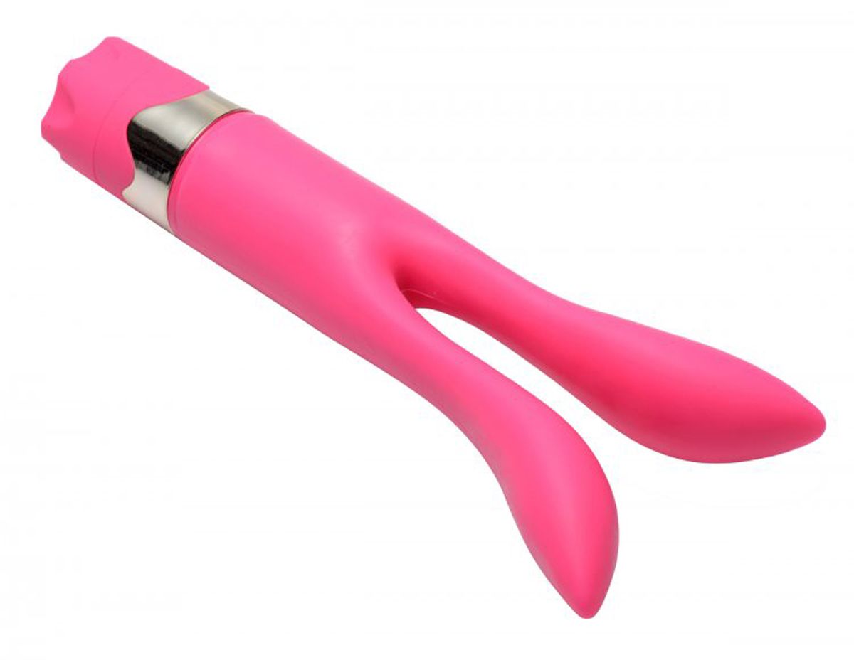 This double eared bunny vibe has a unique dual stimulation design, coupled with 7 functions of vibration and pulsation. The curved ears are perfect for pinpoint sensation, or direct G-spot stimulation. Perfect for men and women, the versatile shape lets you stimulate nearly any part of the body! The smooth, matte silicone material is body safe and phthalate-free, and cleans up easily once the fun is over. Compact and ideal for travel.