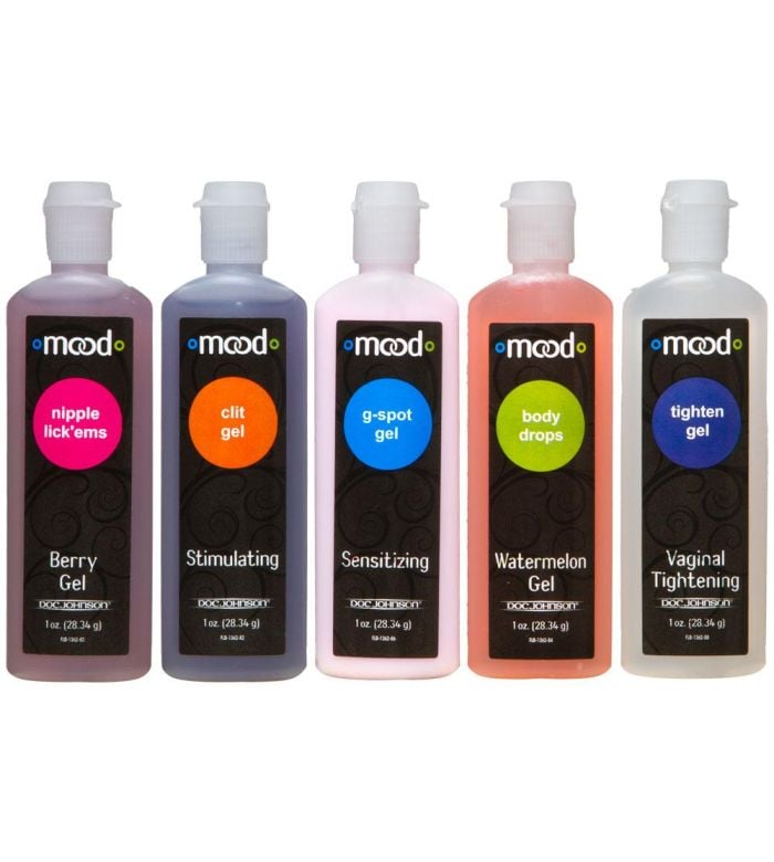 - Description: Lick, drip, rub, plump and explore with Doc Johnson’s Mood Pleasure for Her kit, a five piece sampler pack of stimulating liquids designed specifically to suit her moods and desired pleasures, be it during solo or shared play. To start, this kit includes a delectable, berry flavored nipple gel, the Nipple Lick’ems, a tasty topical agent designed to stimulate the nipples and offer your lover an even sweeter treat than usual, comprised of an edible water-based formula that is non-staining and sugar-free. Following in tow is a stimulating clit gel with a similar effect; the Clit Gel is to be applied directly to the clitoris prior to foreplay or masturbation, and attracts bloodflow to the sensitive pleasure pea within a few minutes in order to enlarge and arouse it for easier and certainly more pleasurable stimulation.