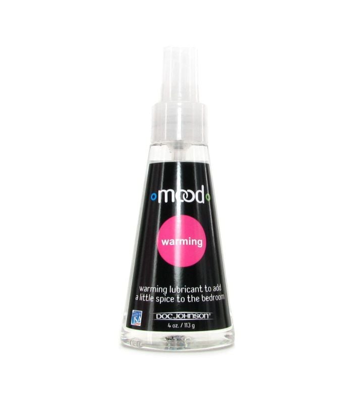 - Description: Adding lots of sexy, ultra-stimulating heat to sexual situations, Warming is one of several great lubes from the Mood collection. The clear, extra slippery slickness feels close to the body’s own natural lubrication, creating and enhancing pleasurable sensations while adding lots of moisture for a smooth ride. The non-staining, paraben free formula is ideal for skin to skin contact and massage and can be used safely with toy materials like glass, steel, plastic, and silicone as well as with condoms. The curvy, discreet looking pump bottle disperses just the right amount easily and contains 4 oz (113g).