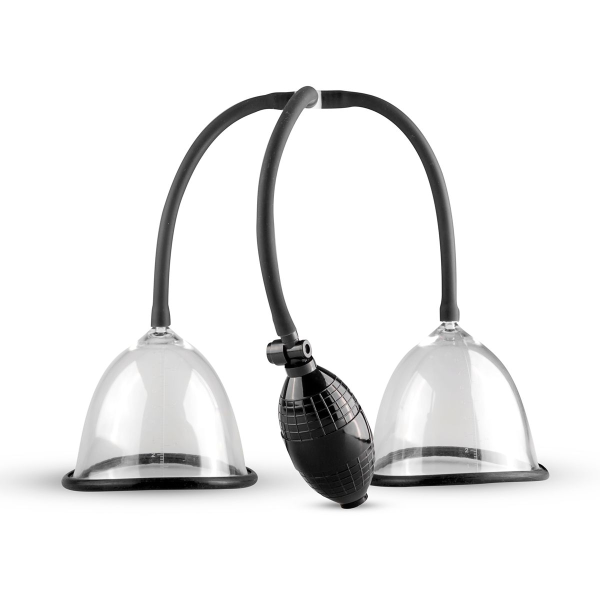 This breast pump with hand pump provides larger, sensitive breasts. Place the cups over your breasts and use the pump to create a vacuum. Watch how your breasts continue to swell until you are satisfied with the result. Your breasts and nipples will be larger and more sensitive to the touch. The cups feature a small hand pump with an air release valve. This allows you to release the vacuum in the cups with one press of the button.