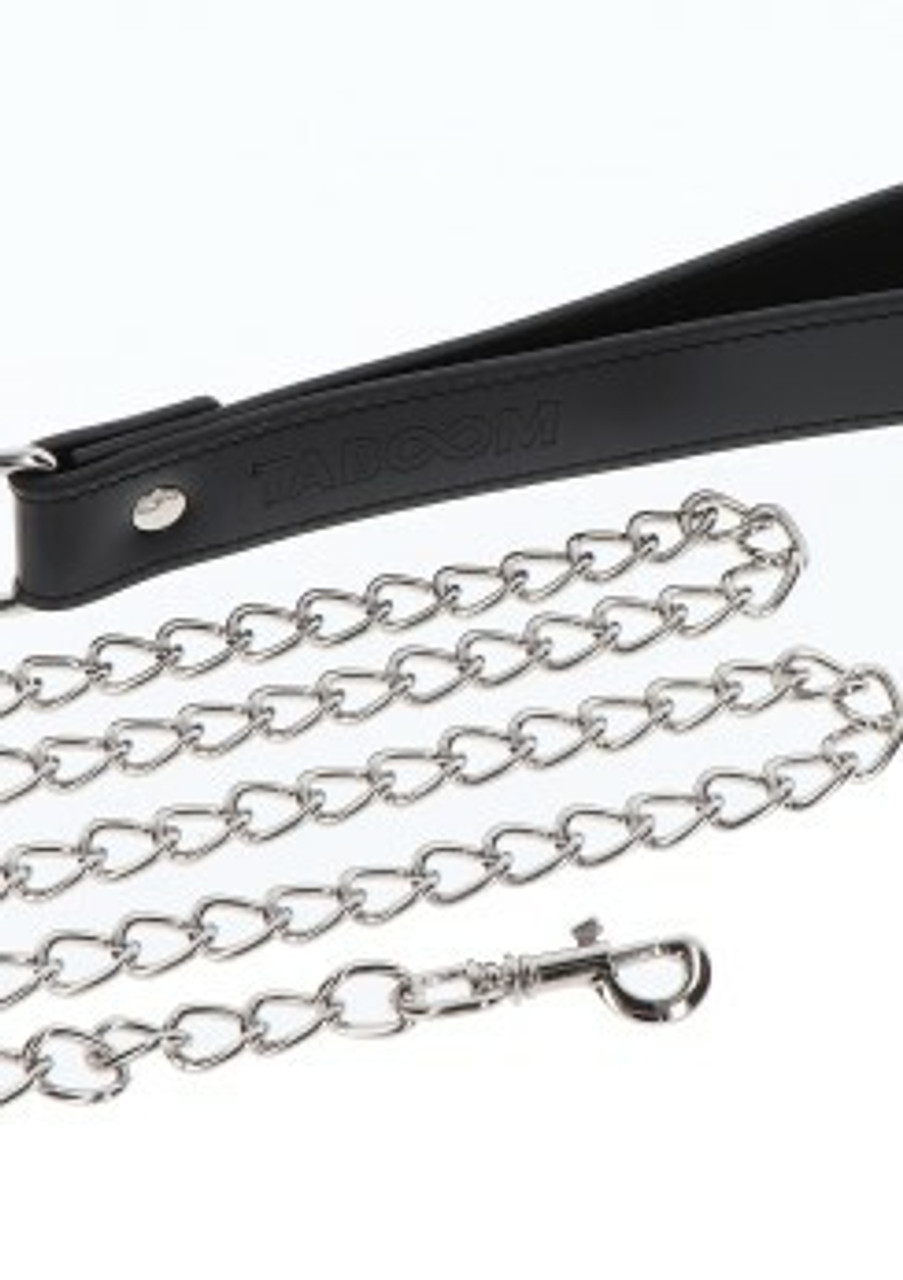 Explore your naughty side and use the TABOOM Elegant Collar and Chain Leash in the bedroom, play party or kinky club. You don’t have to be a fan of puppy play to like the idea of having your partner controlling you by walking you around or make you do naughty things you never did before. Leading the Sub on a chain can make the Dom feel very proud of their partner, it will give them a strong sense of ownership and responsibility. The collar is lined with luxury velvet, making it comfortable to wear.