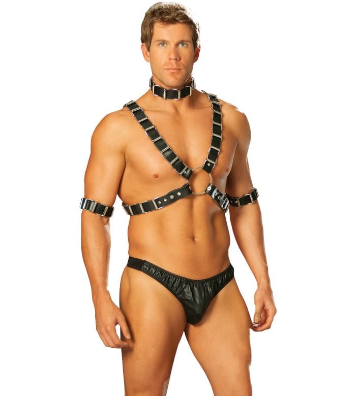 • Item: Elegant Moments 4 Piece Adjustable Harness, Set Includes Leather Harness, Arm Bands And Collar EML9663