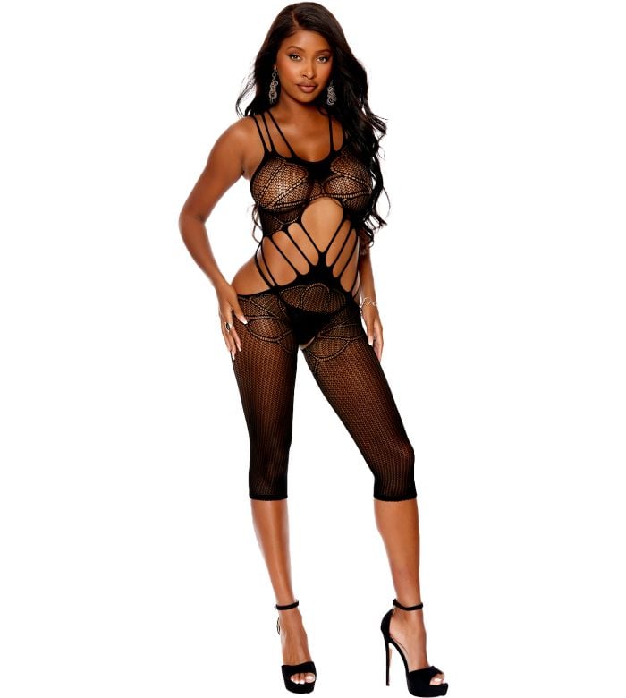 Elegant Moments Crochet Mid Length Bodystocking With Open Crotch EMH12059