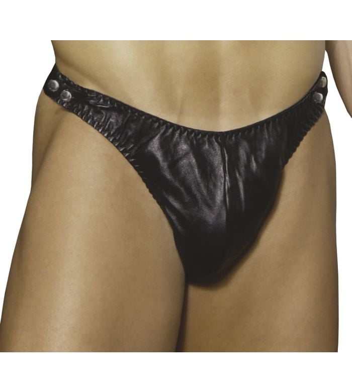 Elegant Moments Mens leather thong with side snaps.