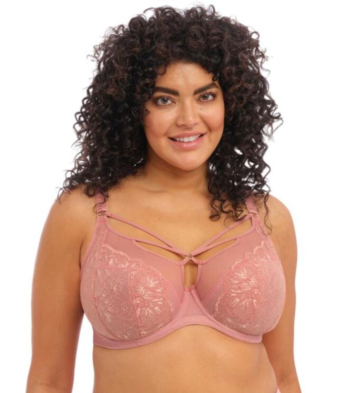 - Description: Make a statement with Elomi’s Brianna Plunge Bra in a Rose Ash colorway. Featuring a plunge shape without the push up, Beautiful floral lacing and its signature strap detailing for a chic contemporary look.