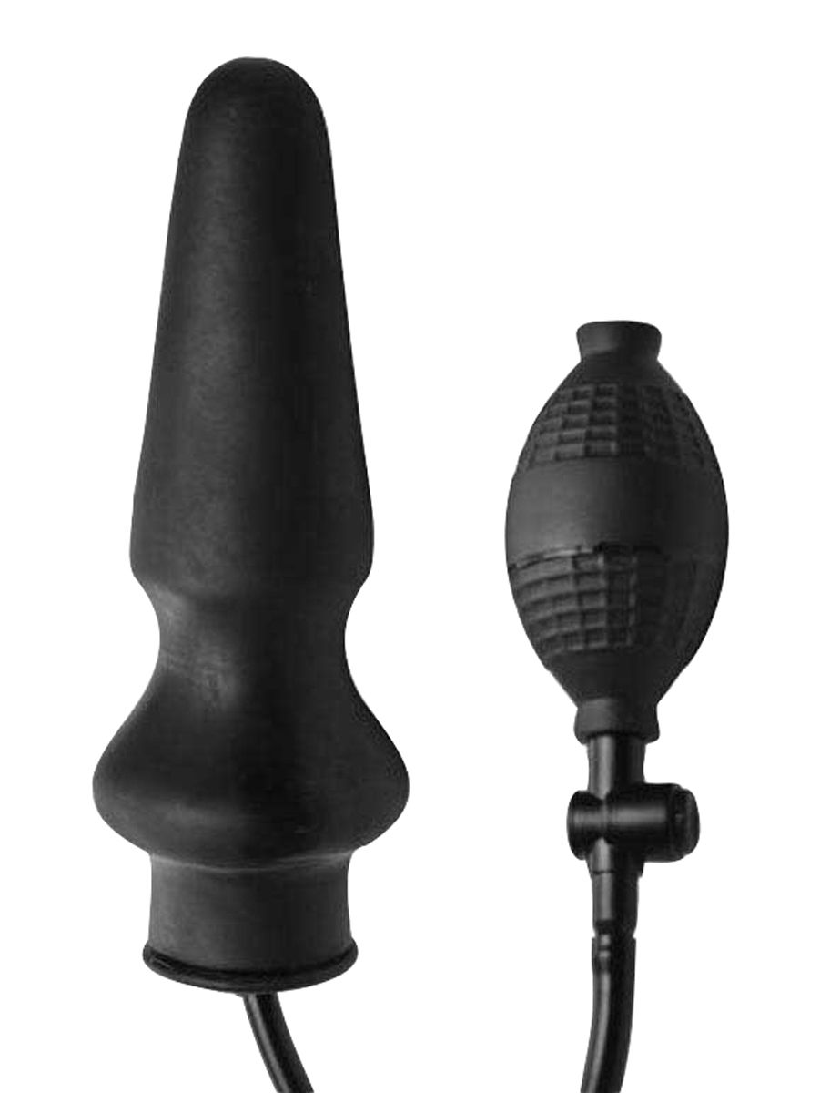 Take ass play to the next level with the Expand XL Inflatable Anal Plug. This impressive plug expands inside the anus, providing a full feeling with an incredible stretch. The smooth plug comes to a tapered round tip for easy insertion, while the flared base ensures easy retrieval and comfort. You can quickly deflate the plug by pressing the release button at the top of the valve. This sizeable inflatable butt plug is designed to deliver customized pleasure so you can enjoy solo sessions or take turns with your plaything… Measurements: Deflated: 20 cm in total length, 14 cm insertable, 5 cm in diameter; Inflated: 23 cm in total length, 18 cm insertable, 10 in diameter Material: Latex, ABS plastic Color: Black