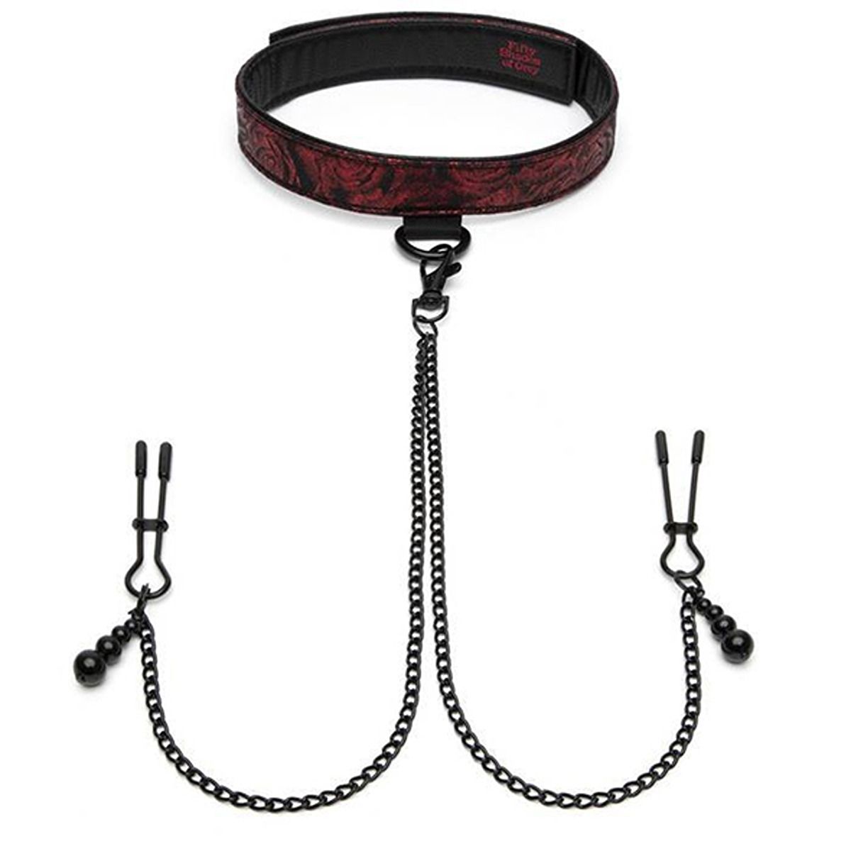 Fifty Shades of Grey u2013 Sweet Anticipation Collar with Nipple Clamps u2013 Red