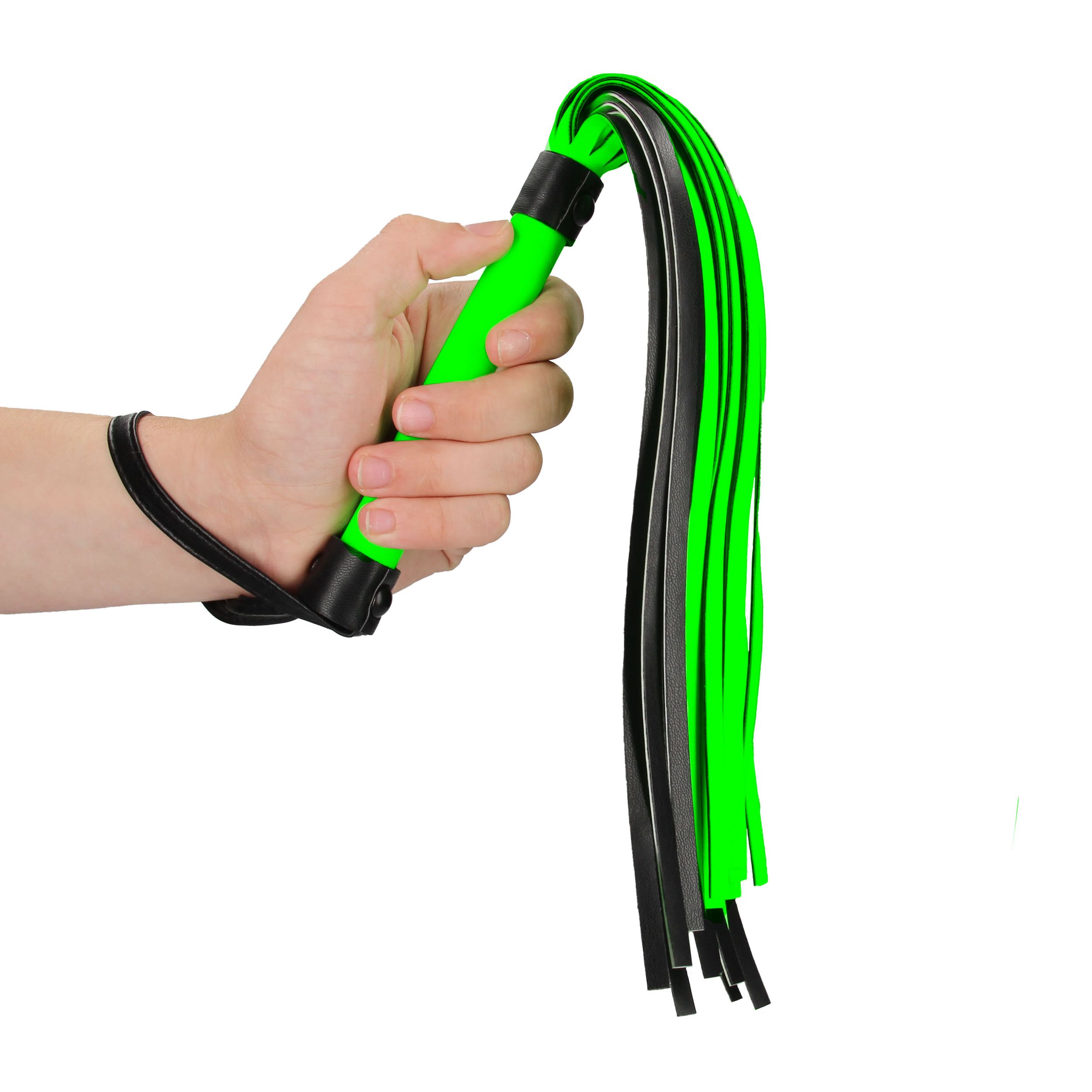 Dominate your partner or submissive with our flogger. Its sturdy handle provides the perfect grip for gentle strokes or hard lashes. Combine caresses and whips to take your bondage sessions to another level of ecstasy. Glow in the Dark products shine in the dark and should be activated with sunlight before use.