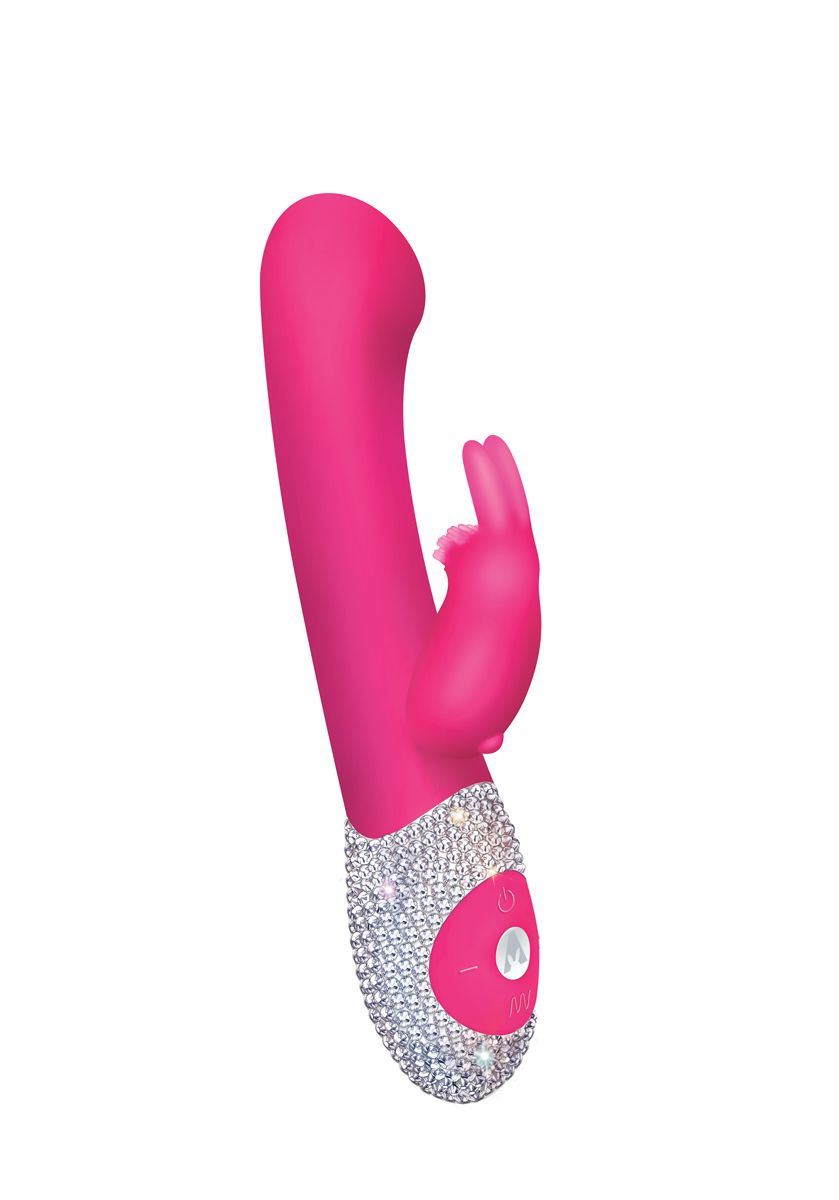 Go for triple pleasure with the G-Spot Rabbit Bling from The Rabbit Company. This quality vibrator simultaneously stimulates the G-spot and the clitoris. The glittering handle makes this vibrator an absolute eyecatcher in your nightstand. The toy has a flat, bent tip that can be used for both internal and external stimulation. Once the vibrator has been inserted, the tip and the clitoris stimulator provide an intense stimulation of your most sensitive spots. The silicone vibrator has 2 powerful motors with 6 vibration settings each. These are easy to adjust using the push buttons on the handle. The rechargeable vibrator includes a USB charging cable.