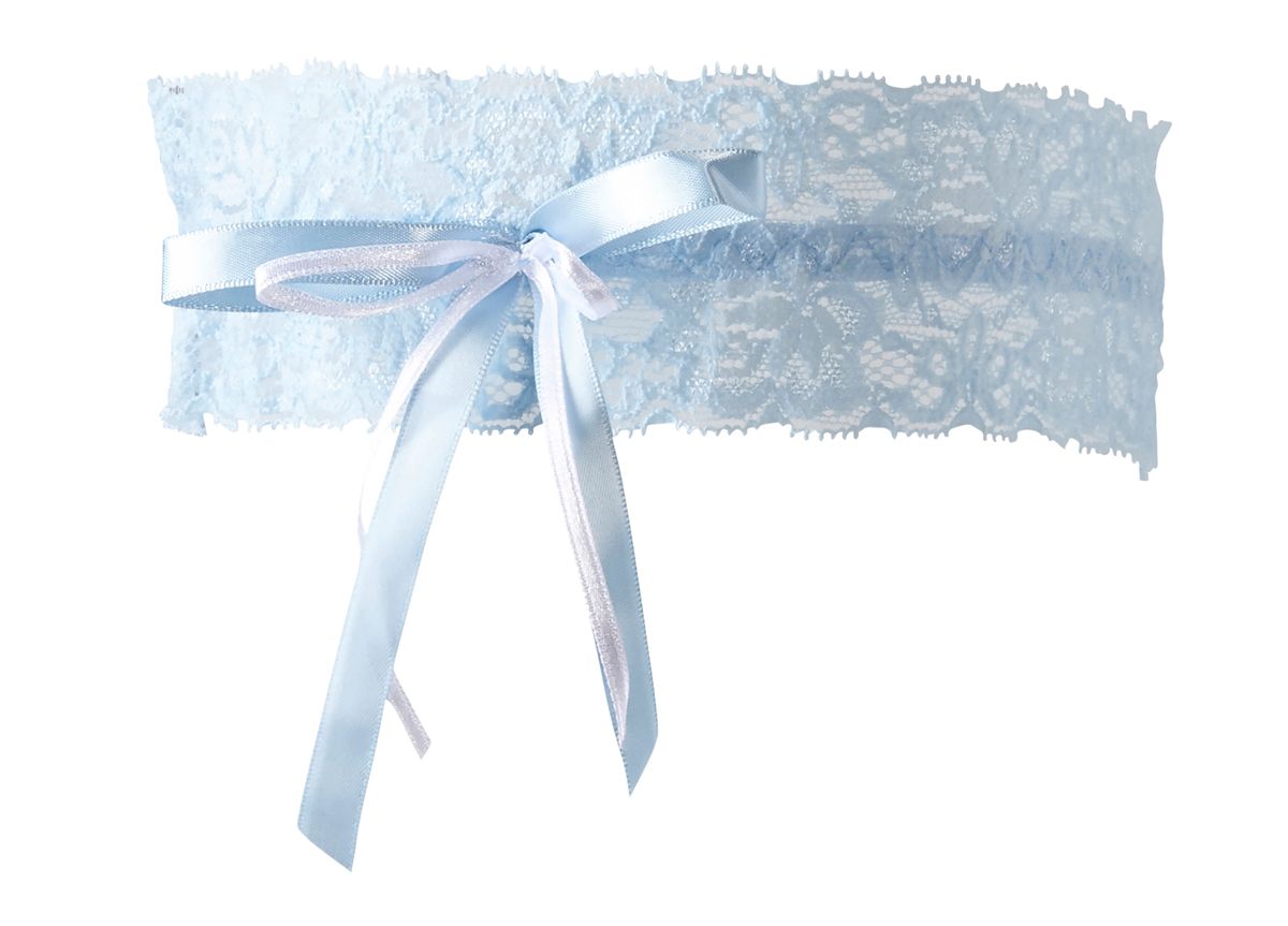 The erotic jewellery for your thighs! Light blue top garter with sweet loop decorations in Light blue and white. 90% of polyester, 10% Elasthan.