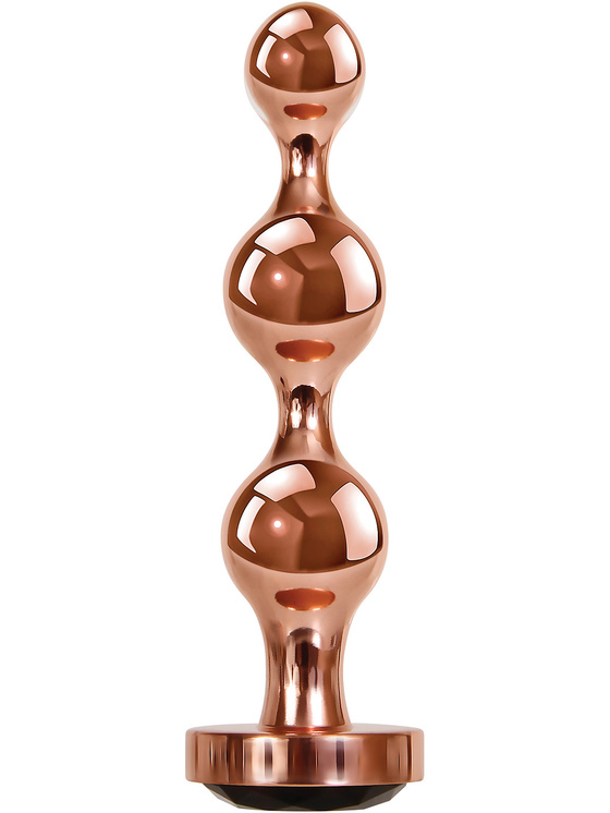 All plugs have a shiny shaft in rosegold aluminum-alloy. Along the shafts there are three beads in order of size like an anal chain that provide a comfortable insertion together with lubricant. Thanks to the metal, you can also try heating or cooling the plugs in water for temperature-play that can increase your pleasure.