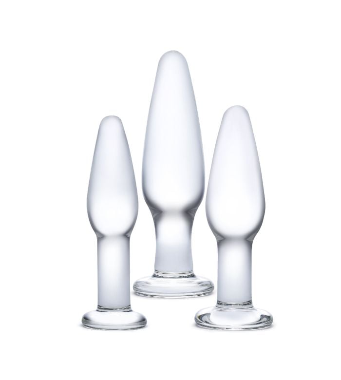 - This 3-piece glass anal training set will take you through three different levels of anal play to prepare you for your journey through the back door.
