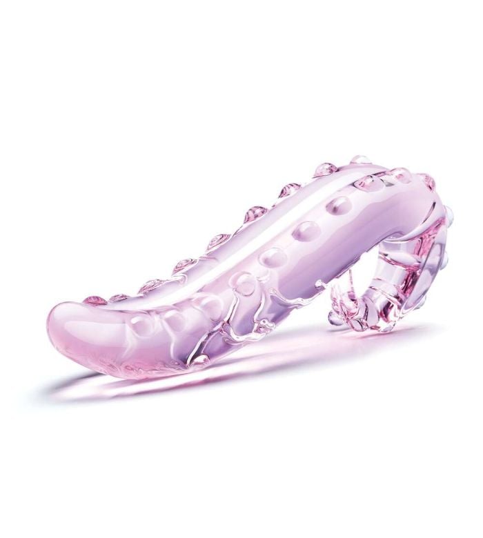 - Description: Fancy a sultry lick of pleasure from our 6″ Lick It Glass Dildo. Get tantalized by your otherworldly fantasies with 6″ of tentacle-like tantalization featuring a curved and swerved tongue shaft and orgasm-inducing nubs lining the edges and a ridged underside for a variety of sensations and stimulations.