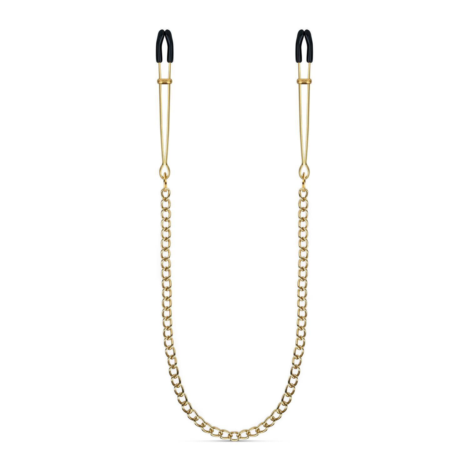 These luxury nipple clamps bring your wildest fantasies to life! The nipple clamps have adjustable sliders, allowing you to determine how intensely you want to increase the pressure. The clamps are connected by a metal chain that your partner can gently pull for extra sensation. Enjoy the tantalizing feeling and surrender completely.