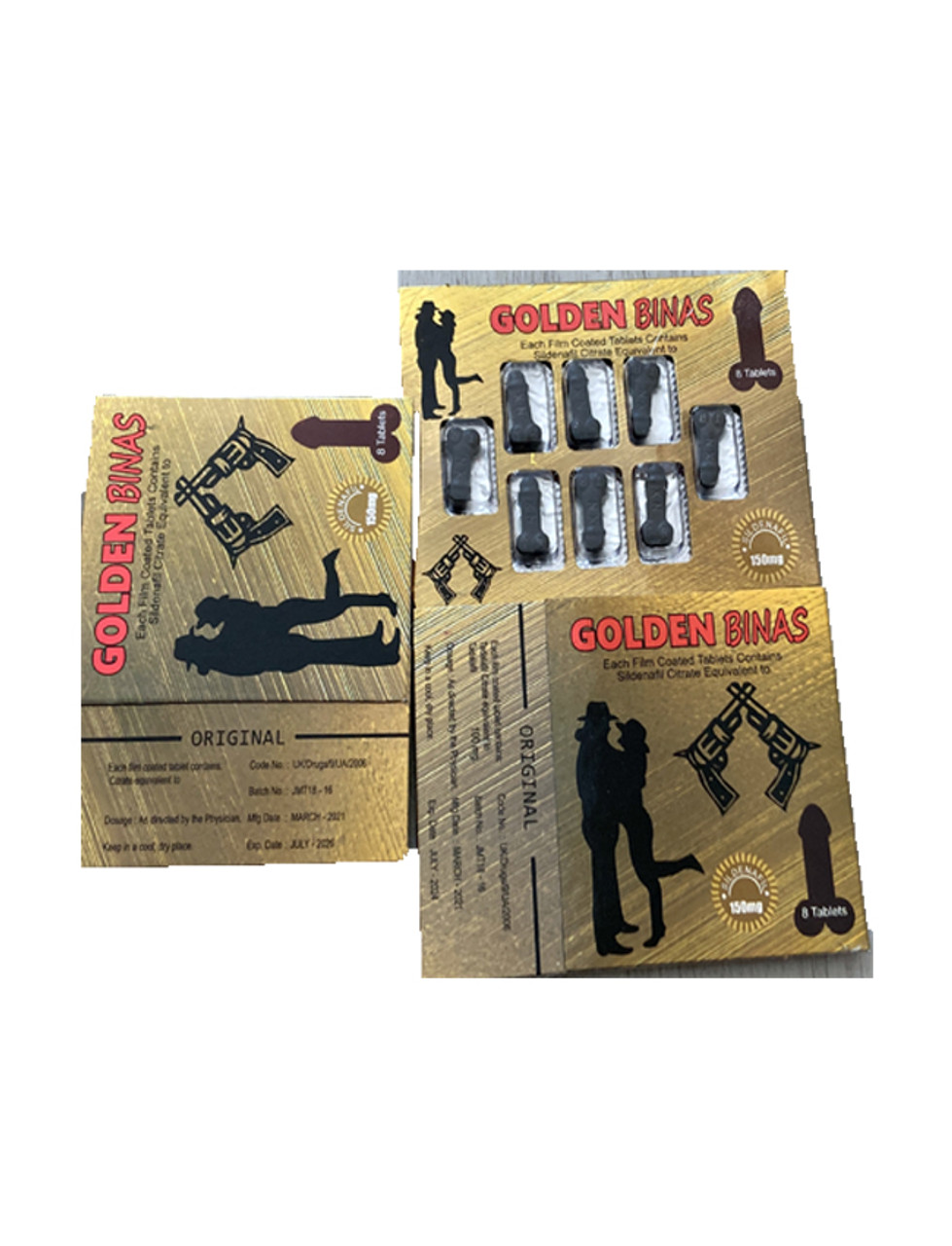 Golden Binas Sildenafil 150mg 8 Tablets Black Get +2 Free ED Sample Tablets