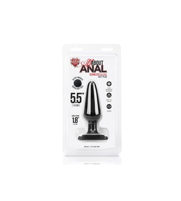 - Description:Looking to step up your anal play? The All About Anal line from Hustler Toys features the 5.5″ Seamless Silicone Butt Plug – the perfect challenge for any anal adventurer.Available in black and pink, this simple butt plug features a flared base for safety and comfort.