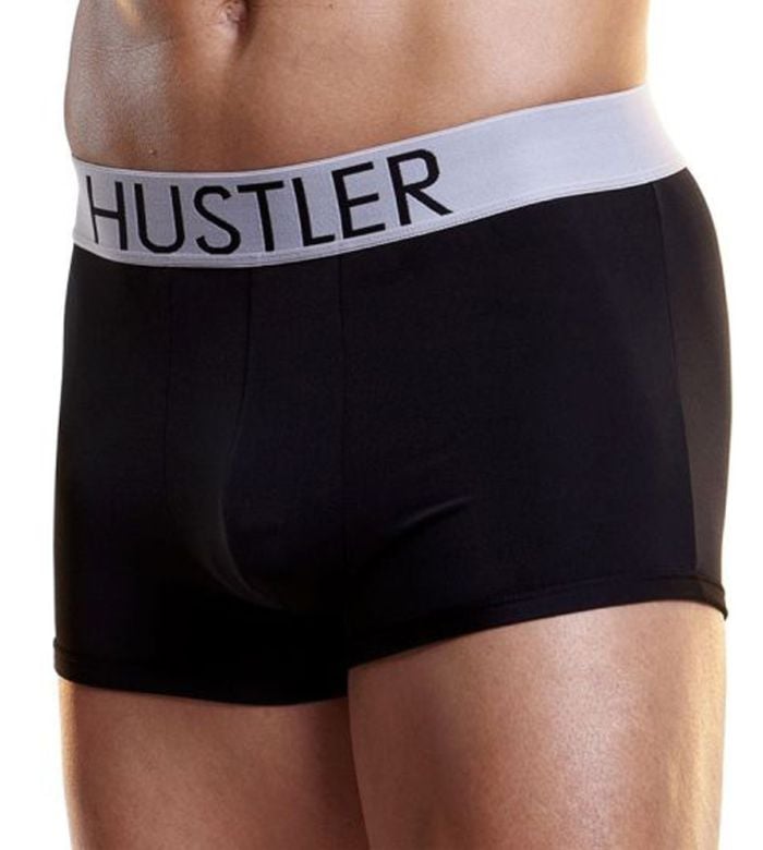 - Description: Sophisticated and sexy, these men’s Elastic Microfiber Trunk features the bold HUSTLER logo on its elastic waistband. These comfortable stretch trunks are perfect for the everyday man.