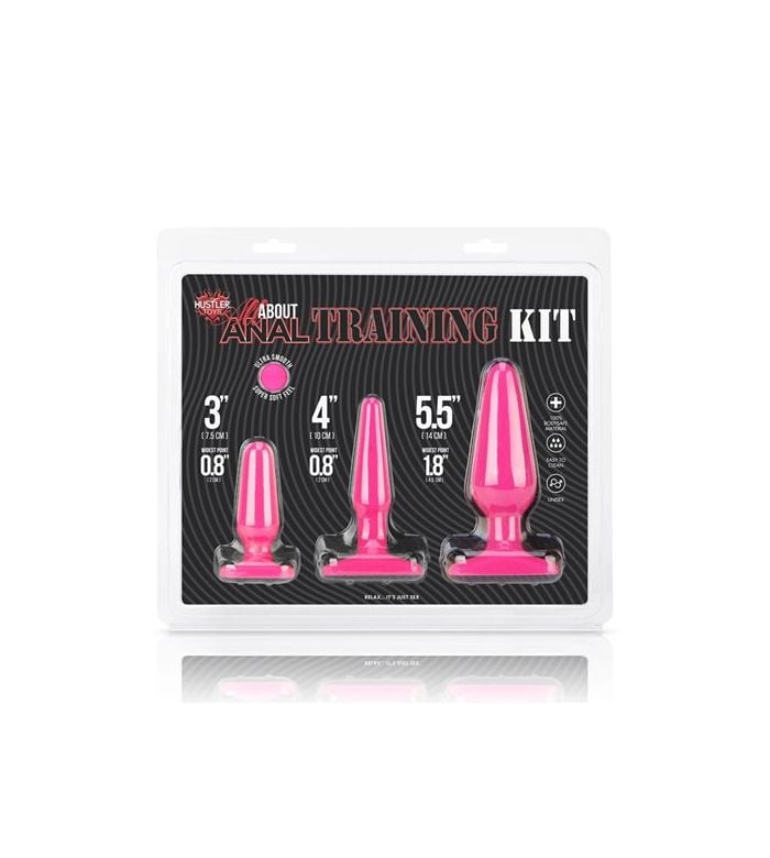 - Description:The Anal Training Kit from Hustler Toys’ All About Anal line includes three sizes of butt plugs. The set include a combination of sizes, ranging from 4”, 5.5” and 6”. The Anal Training Kit come in black and pink to appeal to both men and women. This set is perfect for working up to anal perfection.