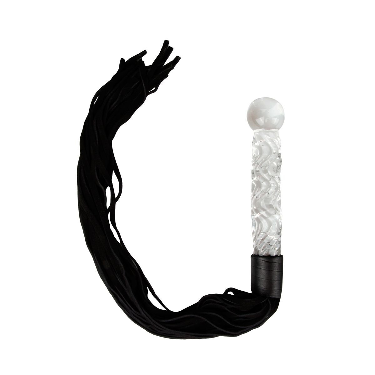 The glass Cat-O-Nine Tails features genuine bull leather tresses that are soft enough for beginner play but heavy enough to deliver a firm whack! The heavy-duty weighted glass handle is hand-blown and doubles as a glass dildo for vaginal or anal play. The beautiful textured swirls provide added stimulation, and the glass handle can be heated or cooled for tempting temperature play.