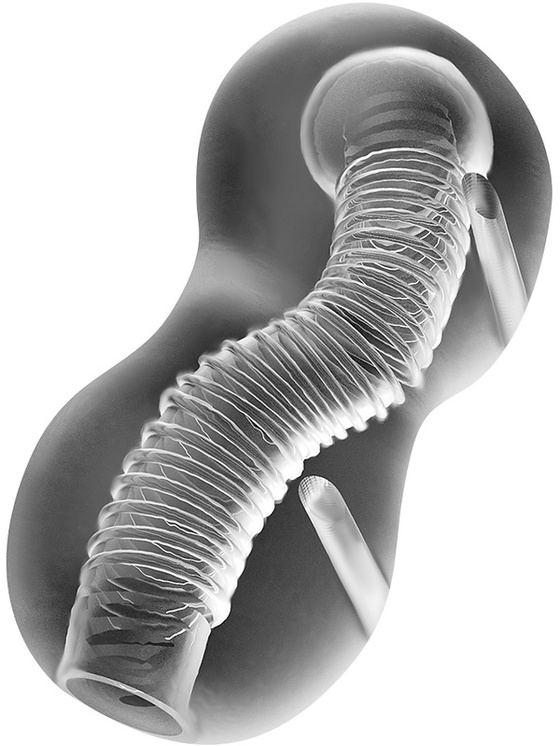 The twisting tunnel is decorated with stimulating grooves and spirals that provide a fantastically comfortable and sucking sensation as you bring your penis in and out.