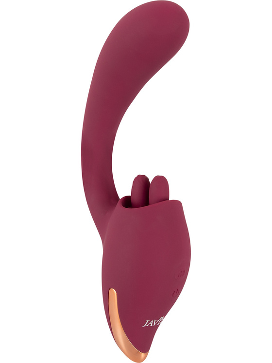 This is a stylish vibrator from Javida with two functions that give double the pleasure: intense vibrations for the inside/G-spot and an innovative licking-function for the clitoris. Two soft, mildly textured tongues move back and forth in opposite directions on the clitoral stimulator to simulate the sensation of oral sex.