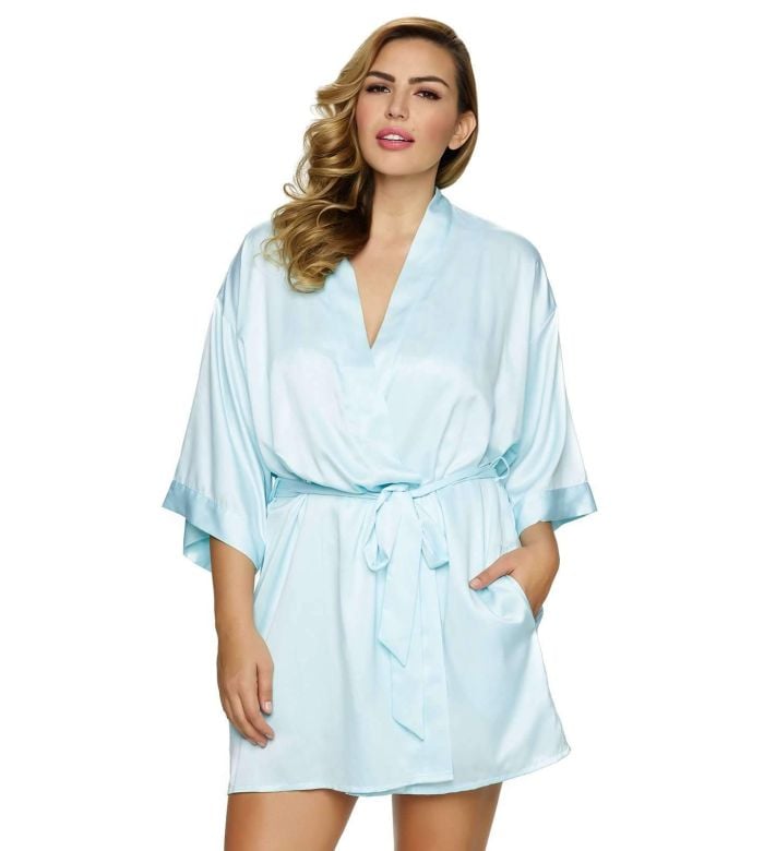 - Description: For a hint of drama and all-day glamour slip on this soft, silky wrap. Wide sleeves and a short shape make it the perfect addition to your lingerie wardrobe.