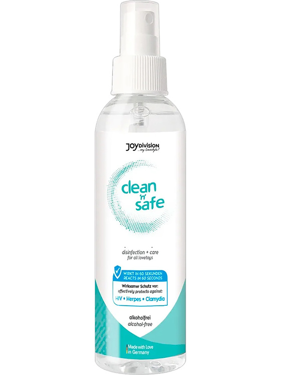 Clean & Safe is a universal toy cleaner for erotic toys – suitable for all sex toys made of rubber, latex, silicone, PVC and plastic. The formula is alcohol-free and dissolves protein, it is an effective protection against HIV, herpes and chlamydia. Free from perfume and dermatologically tested.
