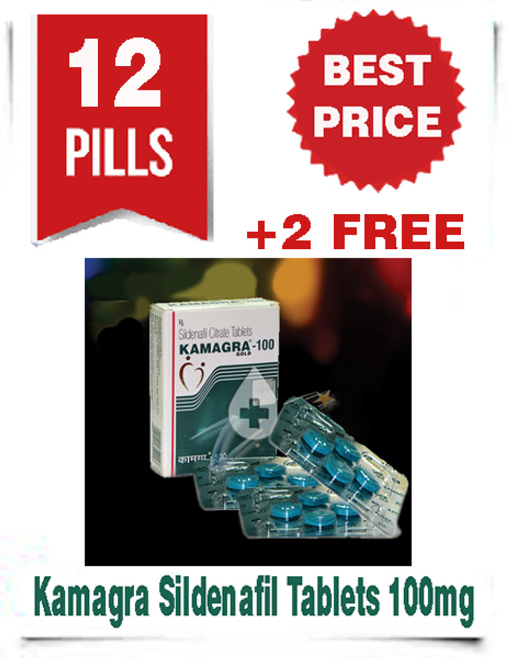 Kamagra Sildenafil Tablets 100mg (3 strip X 4) 12 + 2Free K. 12ps