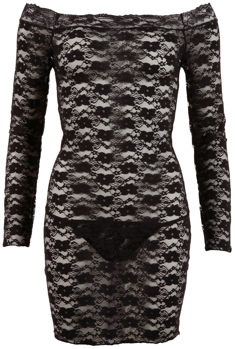 Tight and slim-fitting longsleeved mini dress made of black lace. Matching string included. 94% polyamide, 6% polyester.