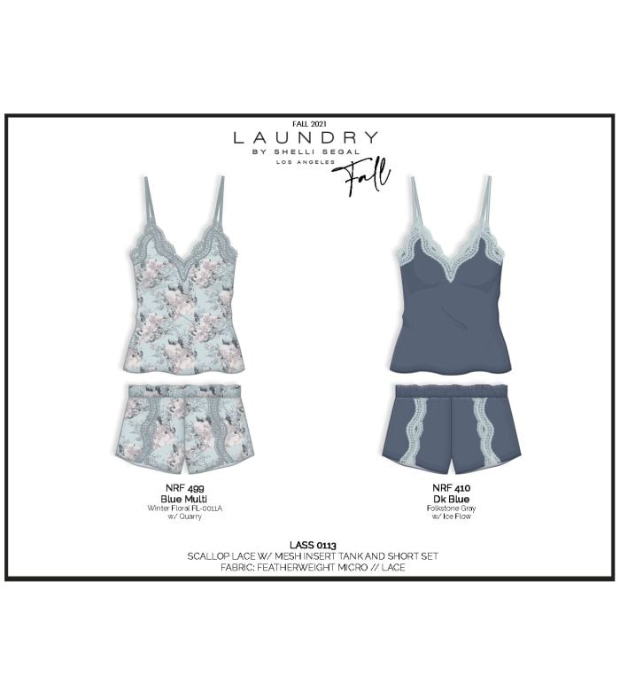 - Description: Laundry by Shelli Segal – Los Angeles – known worldwide for sophisticated taste and design. This beautiful and soft featherweight microfiber scallop lace tank and short set is flattering and comfortable.